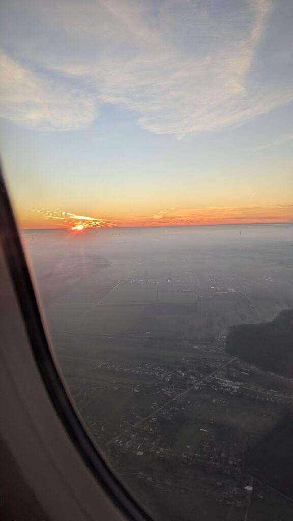 14 декабря утром мы попрощались с Бухарестом и в последний раз в 2025 году поднялись в небо. Персик казался довольным.