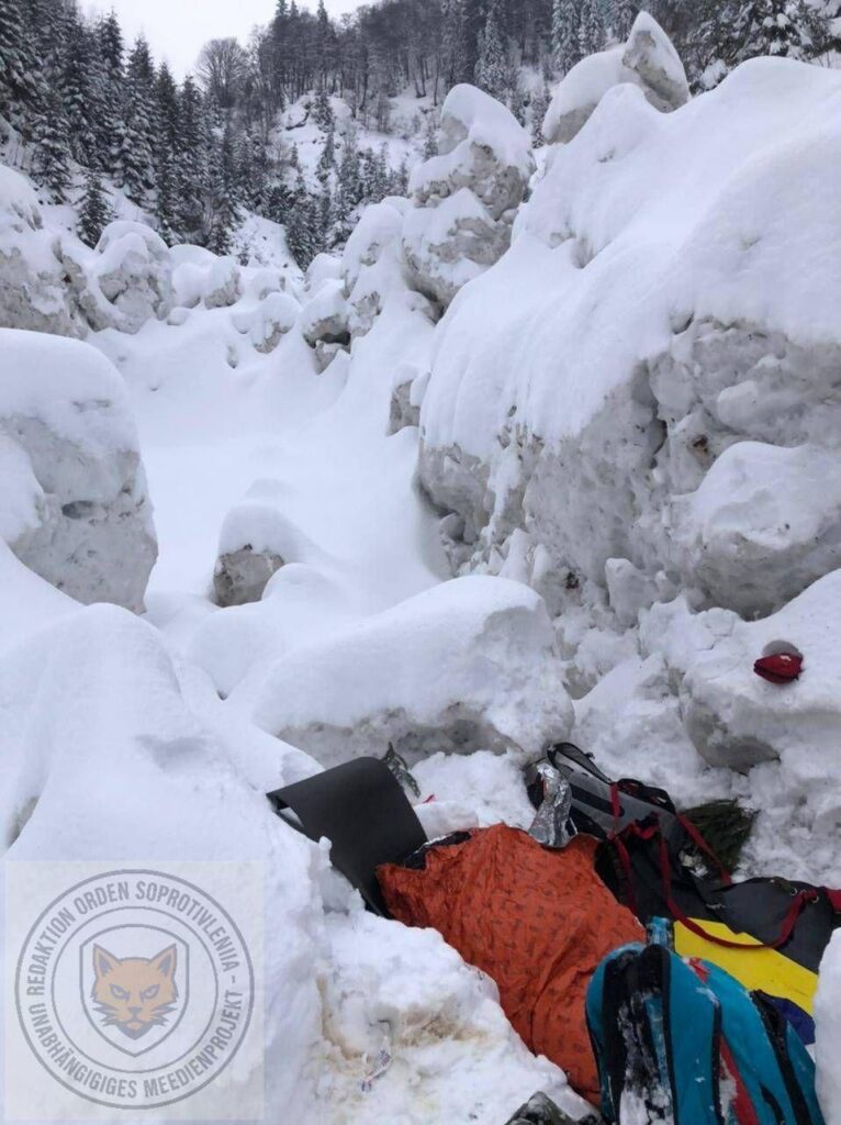 Это пожалуй, самые жуткие кадры, зафиксированные спасателями зимой 2024 года. Румынские спасатели просят каждого , кто осмелился идти путями, где граница Украины и Румынии проходит на вершинах горных хребтов не спускаться вниз в зону смерти. Они сообщили мне о том, что уже установили таблички с предупреждениям об опасностях спуска вниз, а также обещали в целях спасения жизней в ближайшее время разместить указательные знаки, указывающие направления к колыбам — горным туристическим домикам из цельного дерева, в которых туристы и горные пастухи могут согреться или укрыться от дождя. Одна из таких колыб ещё в Украине спасла нам с Персиком жизнь в первый раз.