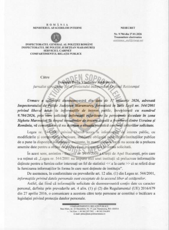 Мы направили запросы в румынские органы по поводу погибших людей, которых находят в горах Марамуреша при попытках перехода границы. Ответы получены. И если убрать сухую бюрократию, смысл такой.